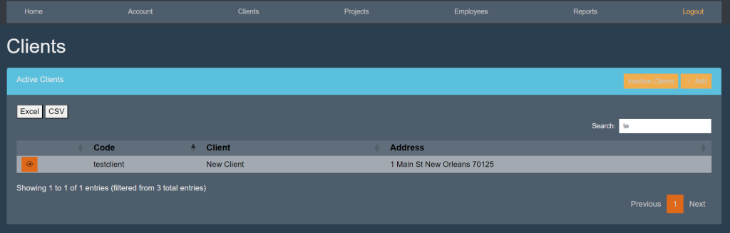 Within the Active Clients box, locate the search bar. Begin typing in the clients’ name. The list will start to eliminate other clients that do not match. For example: