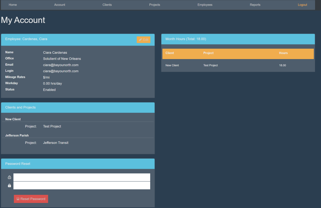 Locate the box titled Month Hours. This will display your total hours that have been worked within the past month as well as the Client and Project that you have assigned these hours to.